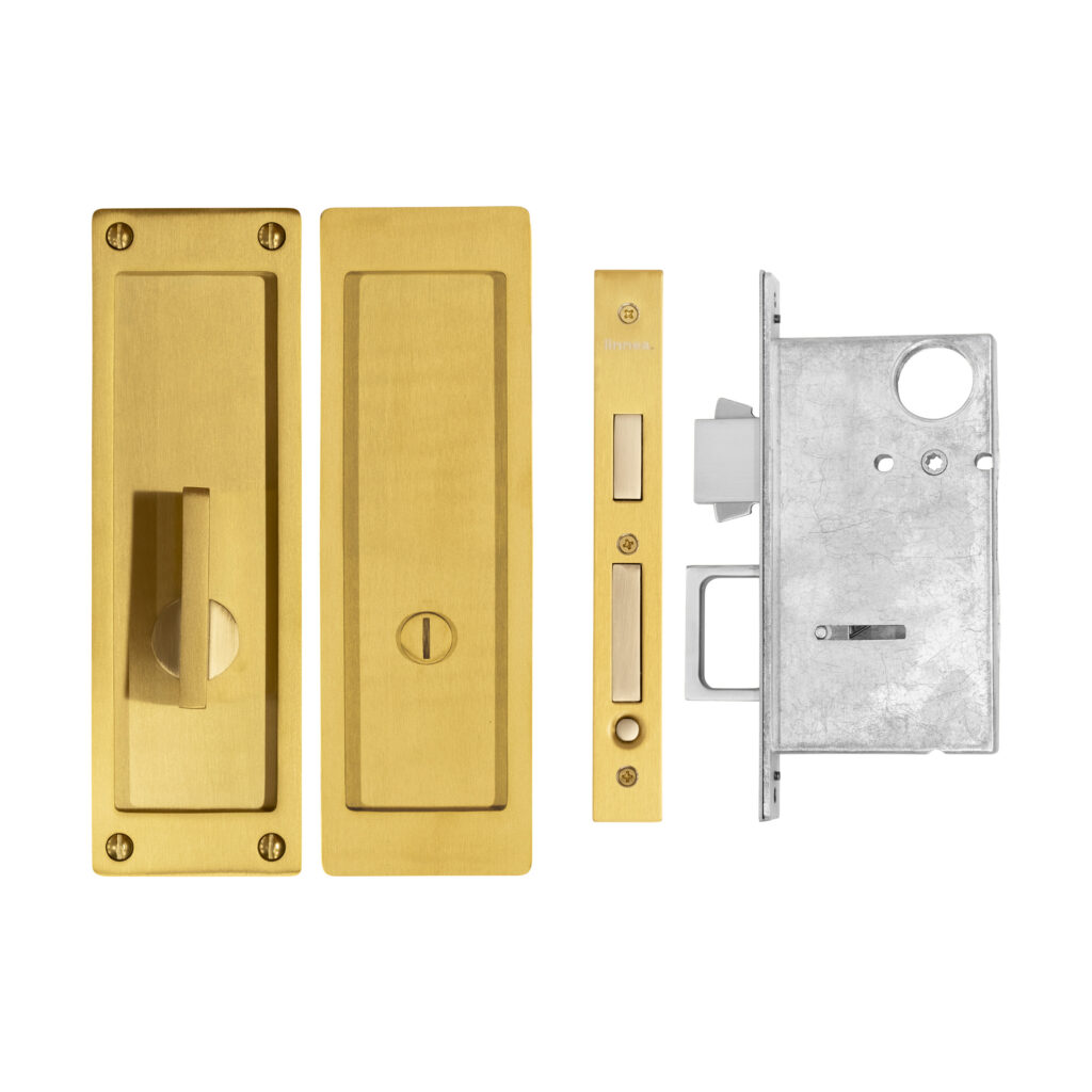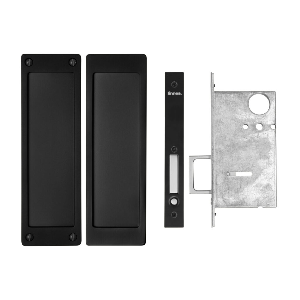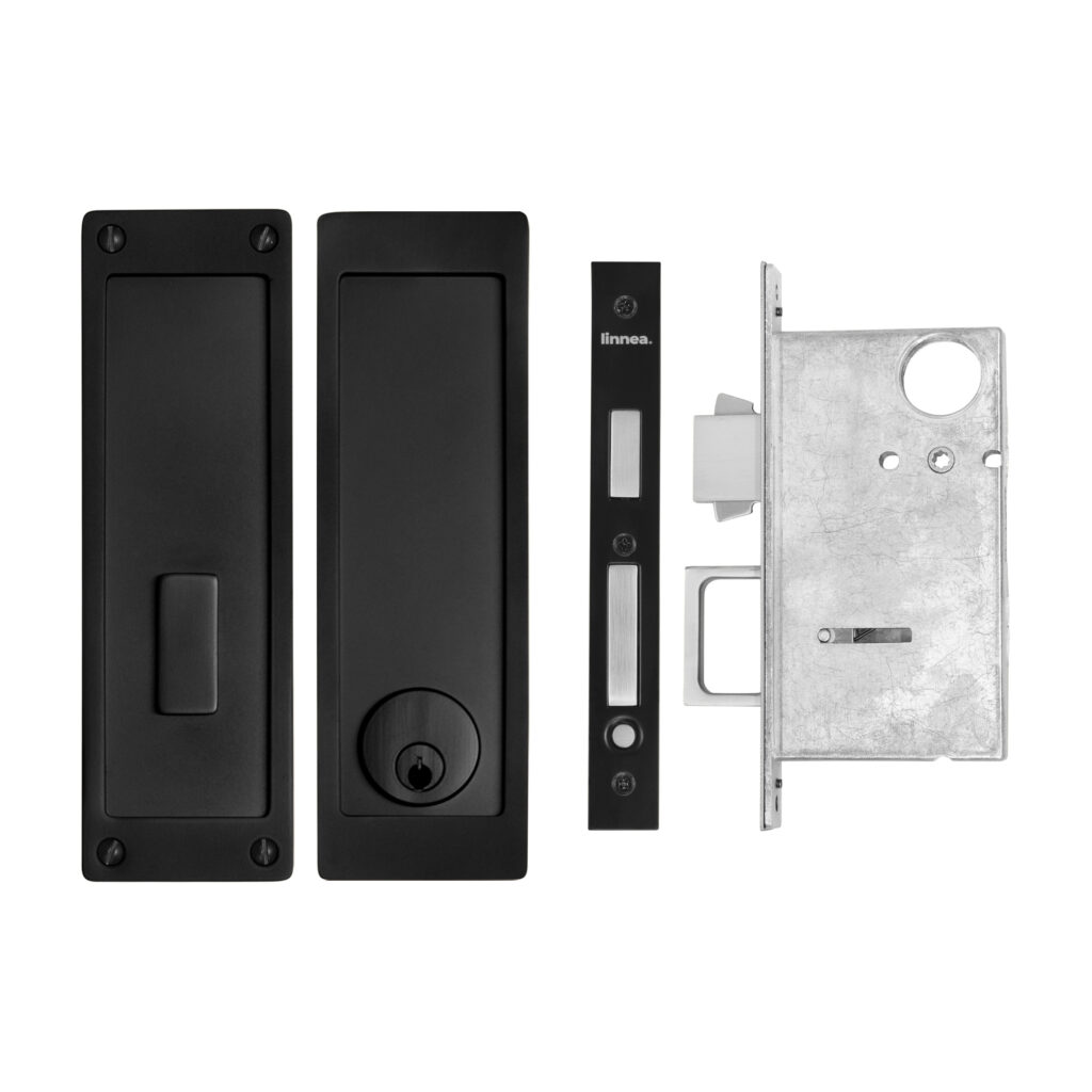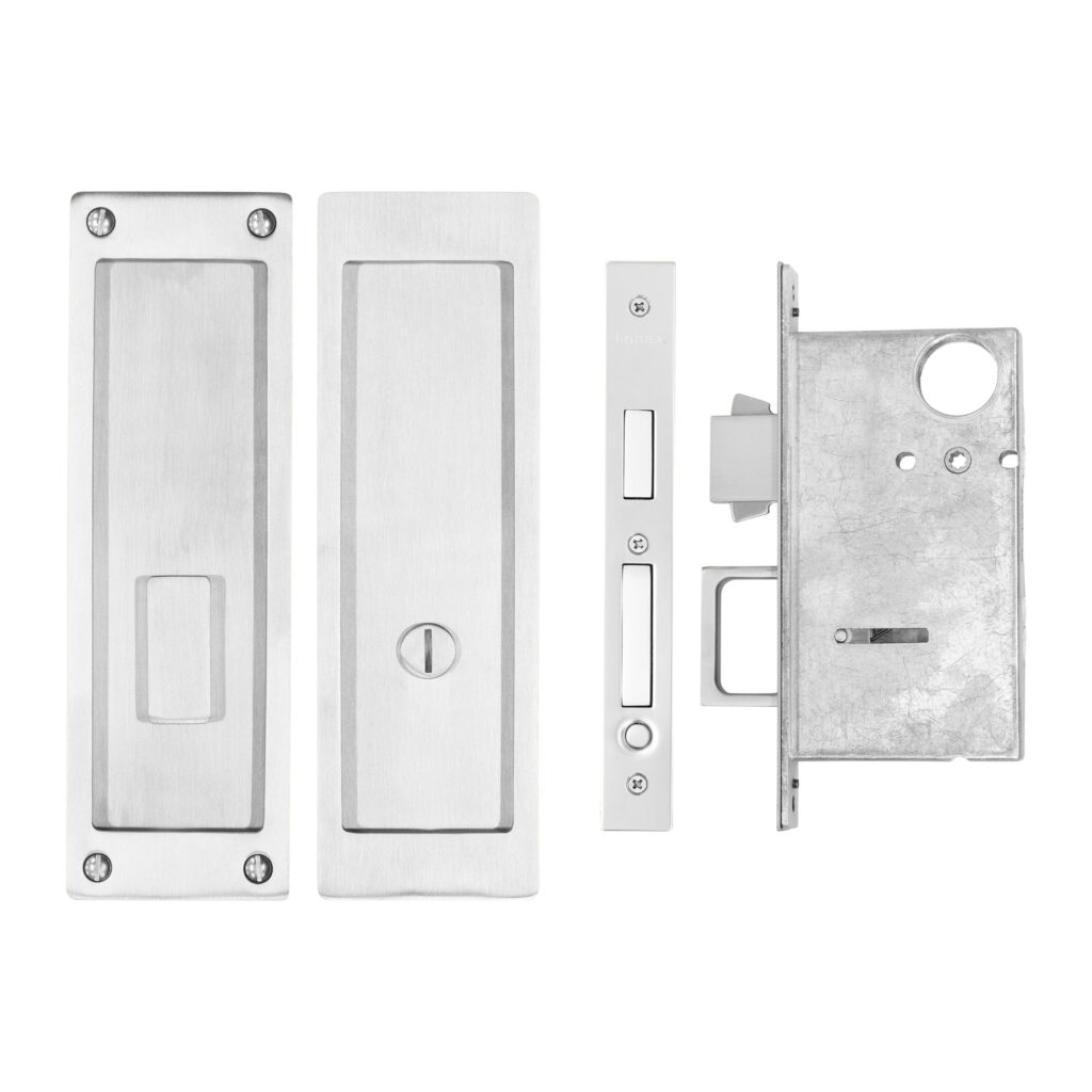 Stainless steel pocket door lock featuring a deep bucket, an extended lip for better grip, and a substantial gauge for a contemporary look. Choose from a variety of security options for a variety of spaces.