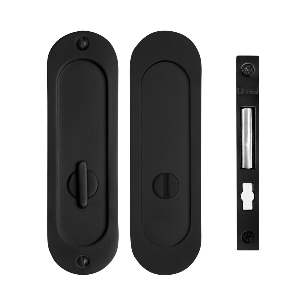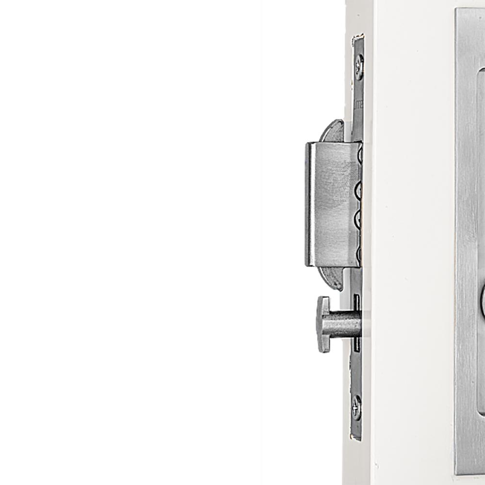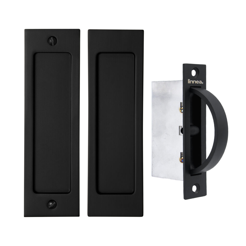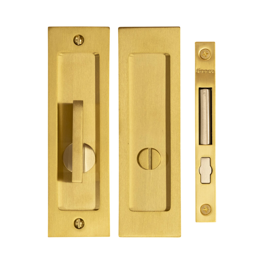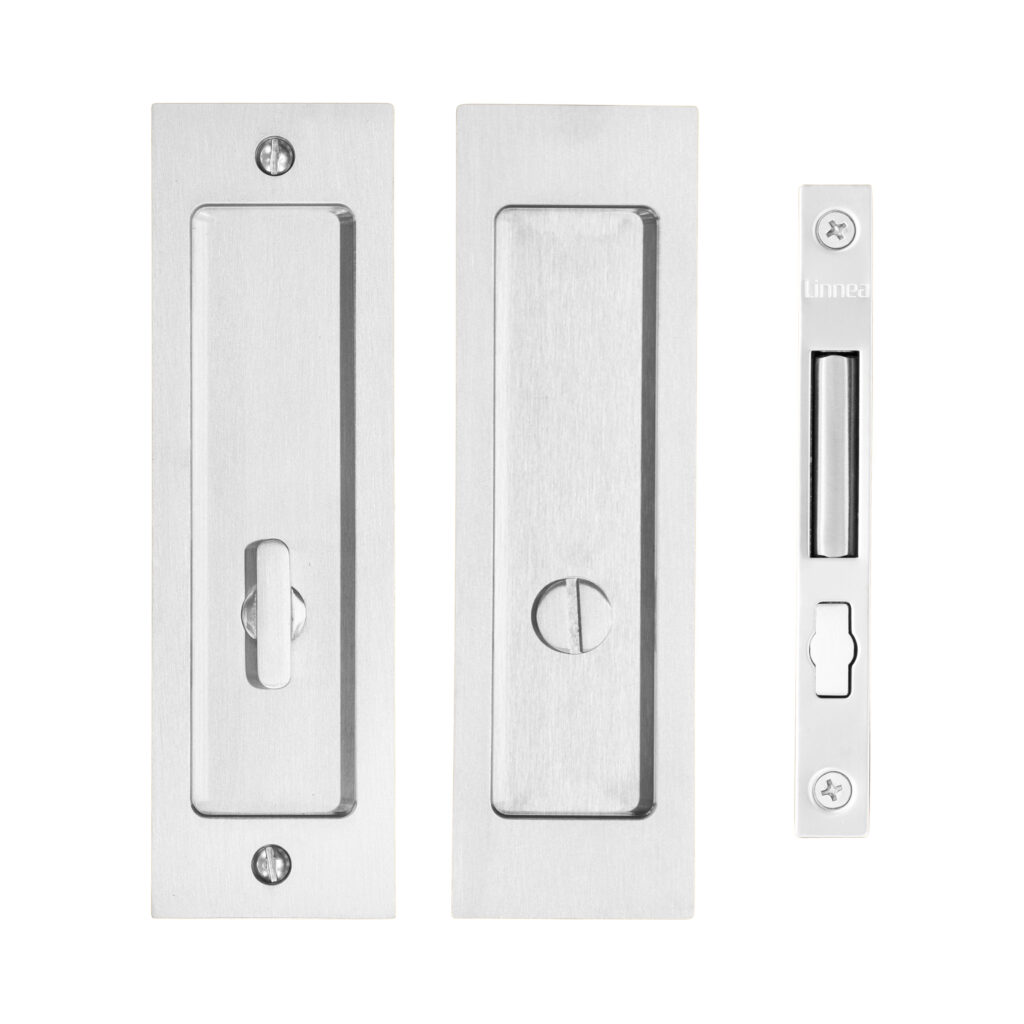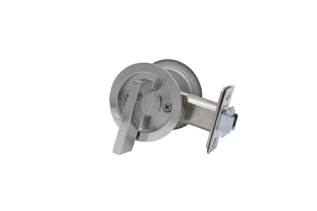 Stainless steel pocket door lock featuring a deep bucket, an extended lip for better grip, and a substantial gauge for a contemporary look. Choose from a variety of security options for a variety of spaces.