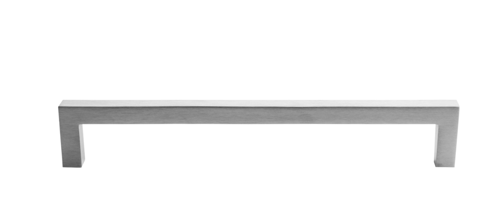 Stainless steel cabinet pull in minimalist design for the finishing touch on cabinets and drawers. Available in 4 finishes.