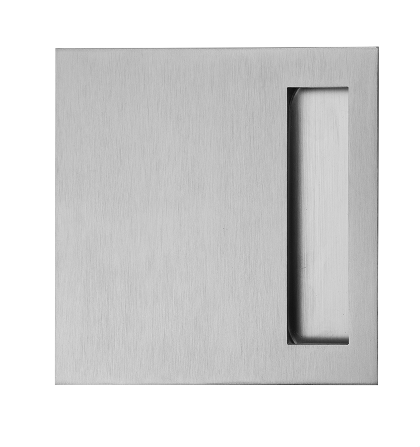 Stainless steel flush pull featuring a deep bucket, an extended lip for better grip, and a substantial gauge.