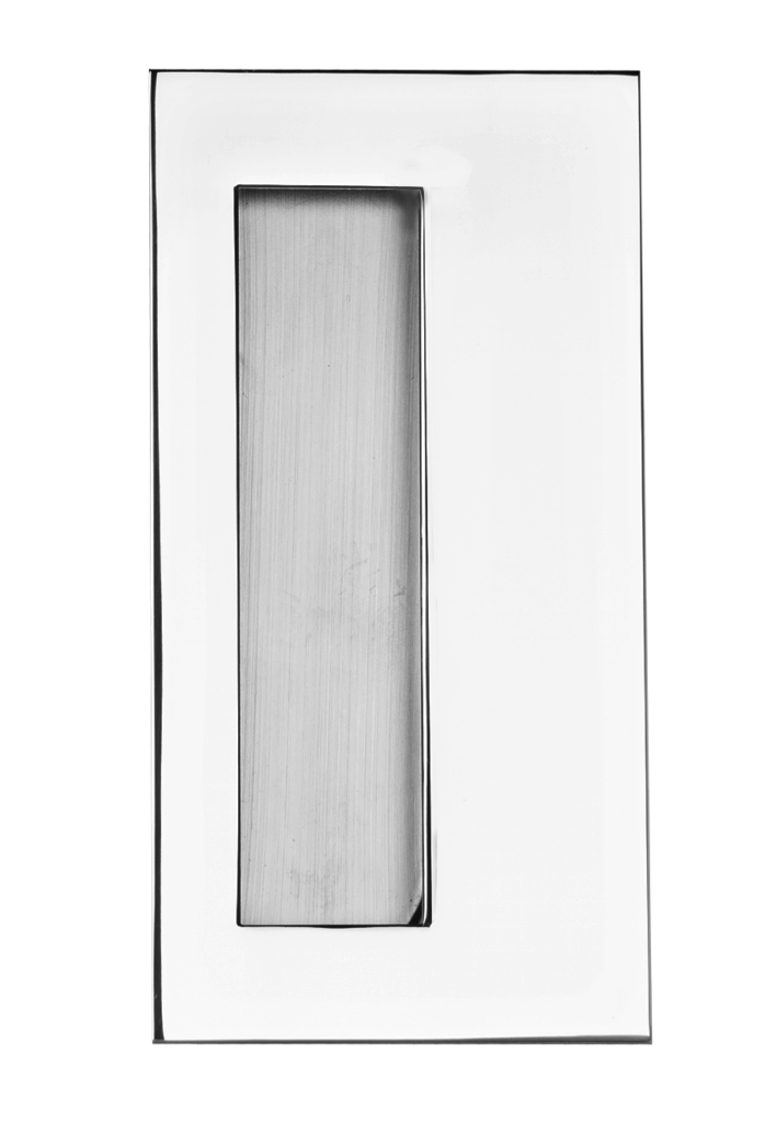 Stainless steel flush pull featuring a deep bucket, an extended lip for better grip, and a substantial gauge.