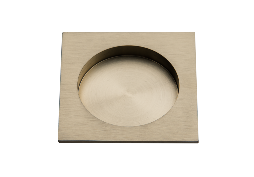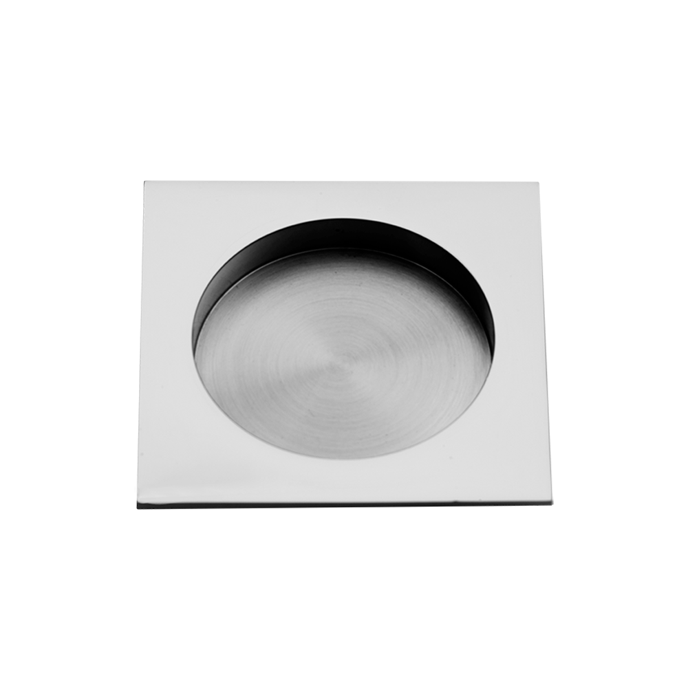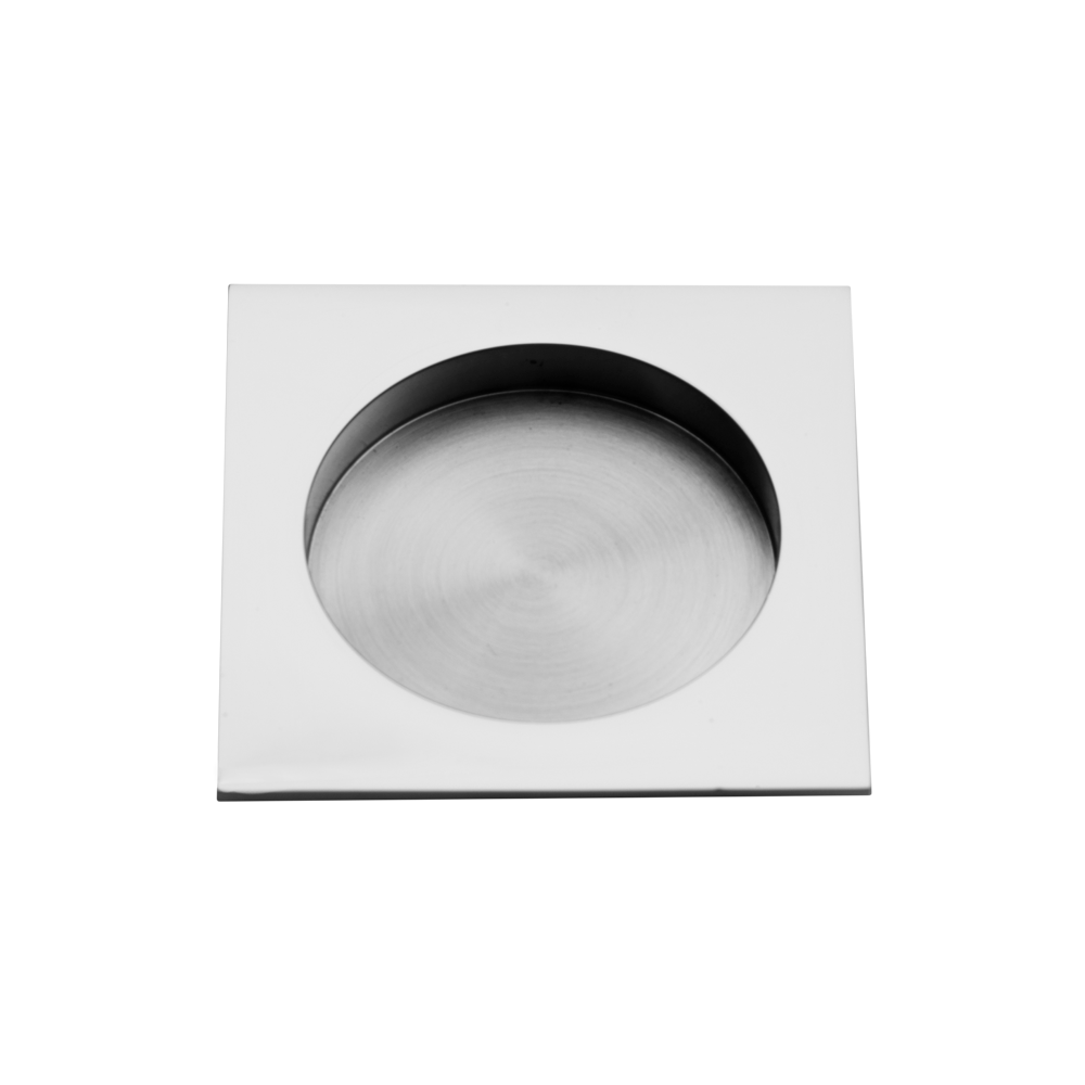 Stainless steel flush pull featuring a deep bucket, an extended lip for better grip, and a substantial gauge.